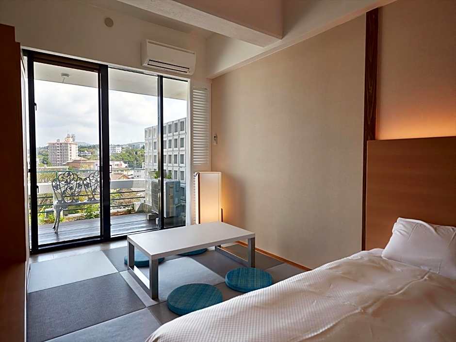 Air-conditioned rooms with Western-style beds and a tatami (woven-straw) seating area. Features ocean views, a flat-screen TV, a fridge, and an electric kettle with green tea bags. The private bathroom comes with a hairdryer and Japanese Yukata robes.